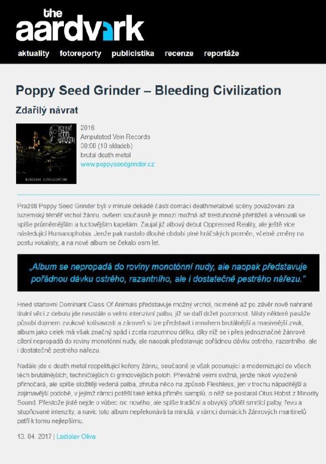 Poppy Seed Grinder´s new album Bleeding Civilization will be released on Amputated Vein Records on August 12th. You can look forward to both normal CDs and limited digi-packs.